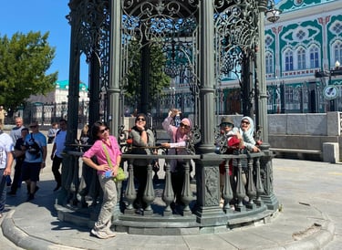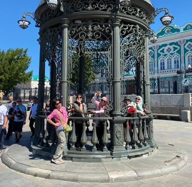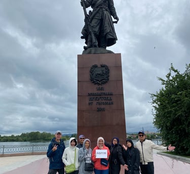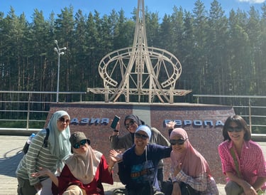 Hari ini kita mulakan aktiviti dengan melawat beberapa lokasi utama di Ekaterinburg bersama tour guide. Destinasi pertama ialah Asia-Europe Border, titik simbolik yang menandakan pertemuan dua benua. Seterusnya, kita bergerak ke Monument to the Founders sebelum menikmati suasana tenang di tepi Iset River.
