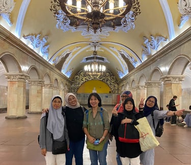 Setiap stesen ada seni bina dan corak tersendiri. Dengan lampu “chandelier” yang berbeza-beza, mengikut stesen tersendiri. Pada hari ni, kita akan lawati Moscow Kremlin, Red Square, State Historical Museum, St. Basil Cathederal, Moscow Cathederal Mosque dan Arbat Street. Untuk ke semua tempat attraction ni, kita cuma naik metro je tau. Memang sangat-sangat best.