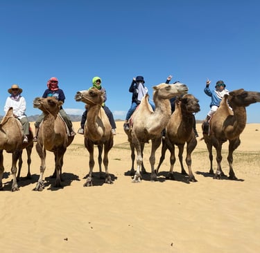 Hari ini kita bergerak keluar dari Ulaanbaatar untuk sightseeing ke kawasan Semi-Gobi Desert. Destinasi utama ialah Elsen Tasarkhai, terkenal dengan sand dunes yang luas dan suasana padang pasir yang unik. Di sini, kita berpeluang merasai pengalaman menaiki unta Bactrian berkembar dua bonggol.