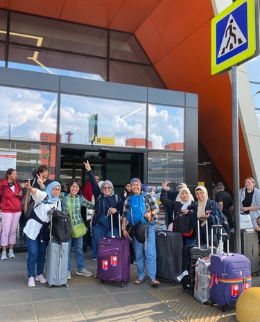 Detik permulaan perjalanan, semua hadir dengan wajah ceria dan penuh teruja sebelum terbang ke Moscow.