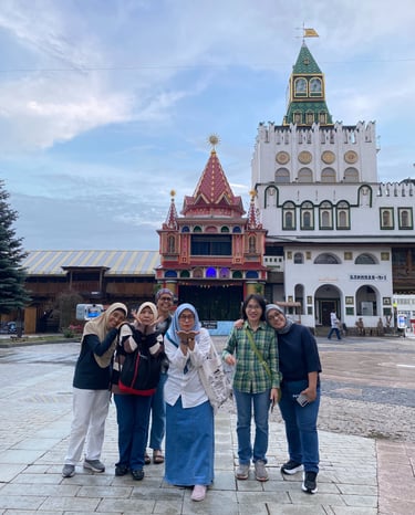 Bergambar di Dalam Kremlin Izmailovo. Warna-warni di dalam Kremlin Izmailovo membuat perserta ceria dan bergembira